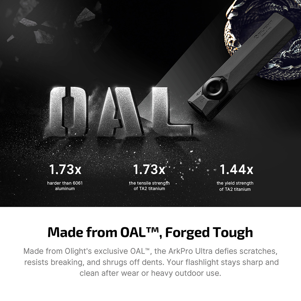 - OAL Toughness: Beneath the beauty, OAL is 1.73× harder than standard 6061 aluminum. The brushed finish doesn't just look premium — it resists the scratches and scuffs that would ruin a conventional flashlight within weeks of hard use.
