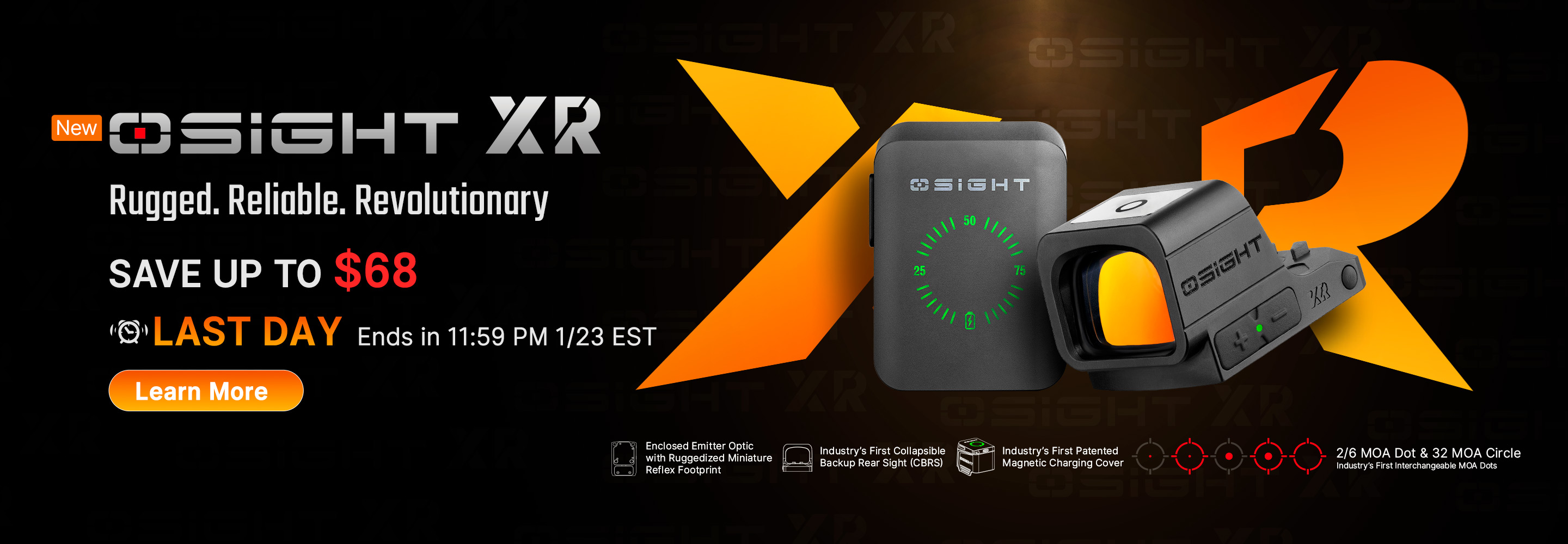 Osight XR Enclosed Red Dot Sight with Ruggedized Miniature Reflex Footprint and 2/6+32 MOA Multi-Reticle System